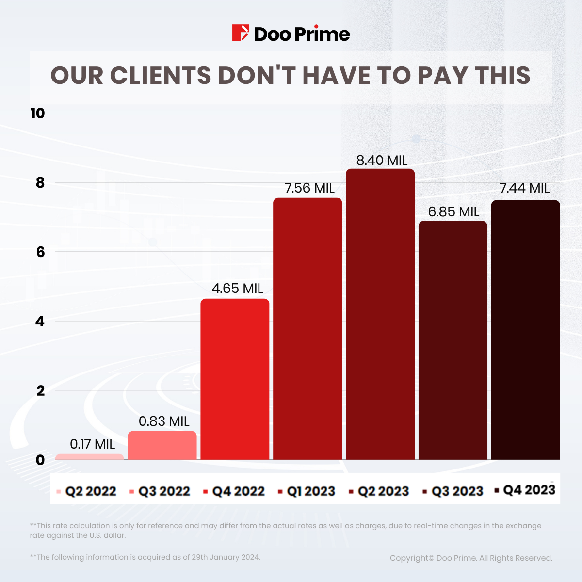 However, despite a weaker quarter, Doo Prime Swap-Free and Swap Reduction Campaign still had a good year to date and concluded with a total of USD 7.438 million of waived swaps.