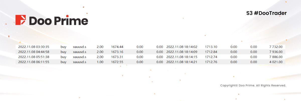 Later, from November 7th to 8th, Xue YanqXXX’s trading strategy was patient and cautious as the overall XAUUSD market is in a sideways drift. However, as XAUUSD pulled up quickly on 8th November 2022 and broke through range-bound, Xue YanqXXX immediately increased his trading position size to 2 – 10 lots and finally gained USD 5,000+ returns in two days.