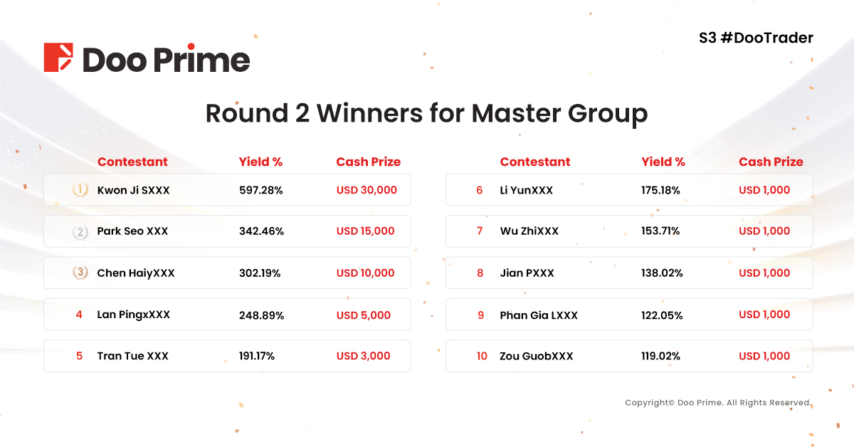 The second round of 2022 S3 #DooTrader Charity Cup Global Trading Competition was successfully concluded on 14th December 2022, bringing this year’s competition to a close. After nearly 3 months of intense competition, a total of 20 outstanding traders in the Master and Classic categories have successfully won abundant rewards. The event also attracted traders from all over the world to come together and demonstrate their trading skills, drawing widespread attention from the industry.