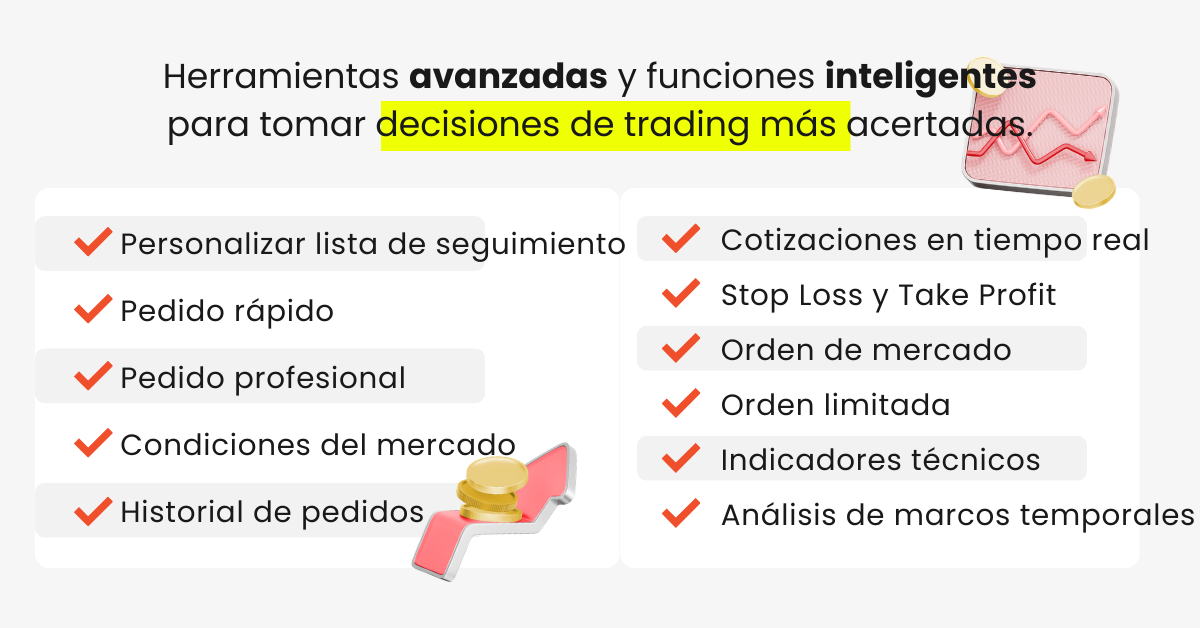 Esta amplia gama de productos le permite explorar oportunidades globales y diversificar sus estrategias con solo un clic.