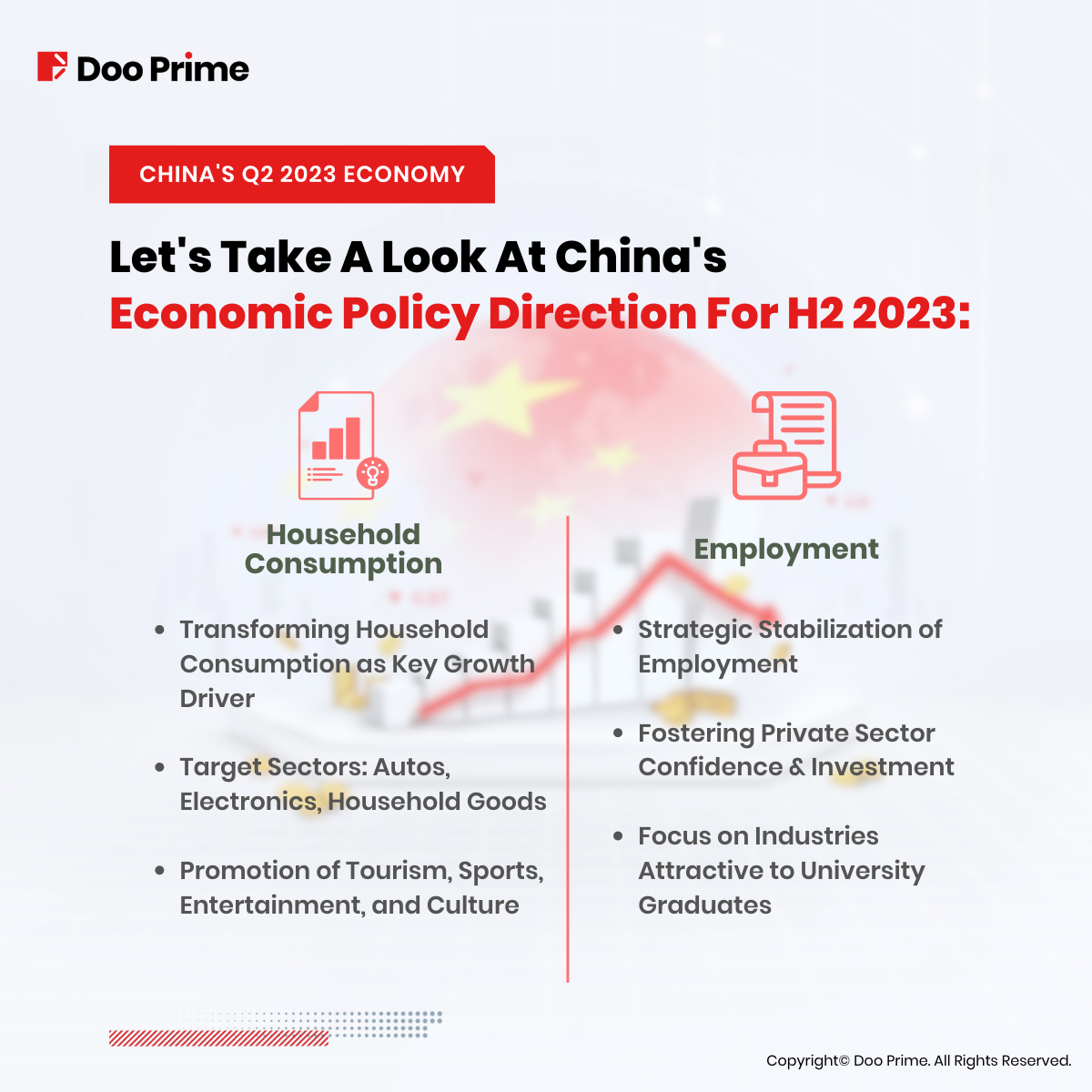 The politburo emphasized transforming household consumption into a key driver of growth. It intends to boost consumption in sectors like autos, electronic products, household goods, and promote tourism, sports, entertainment, and culture. However, there were no immediate measures to boost household income directly, leaving some economists disappointed.