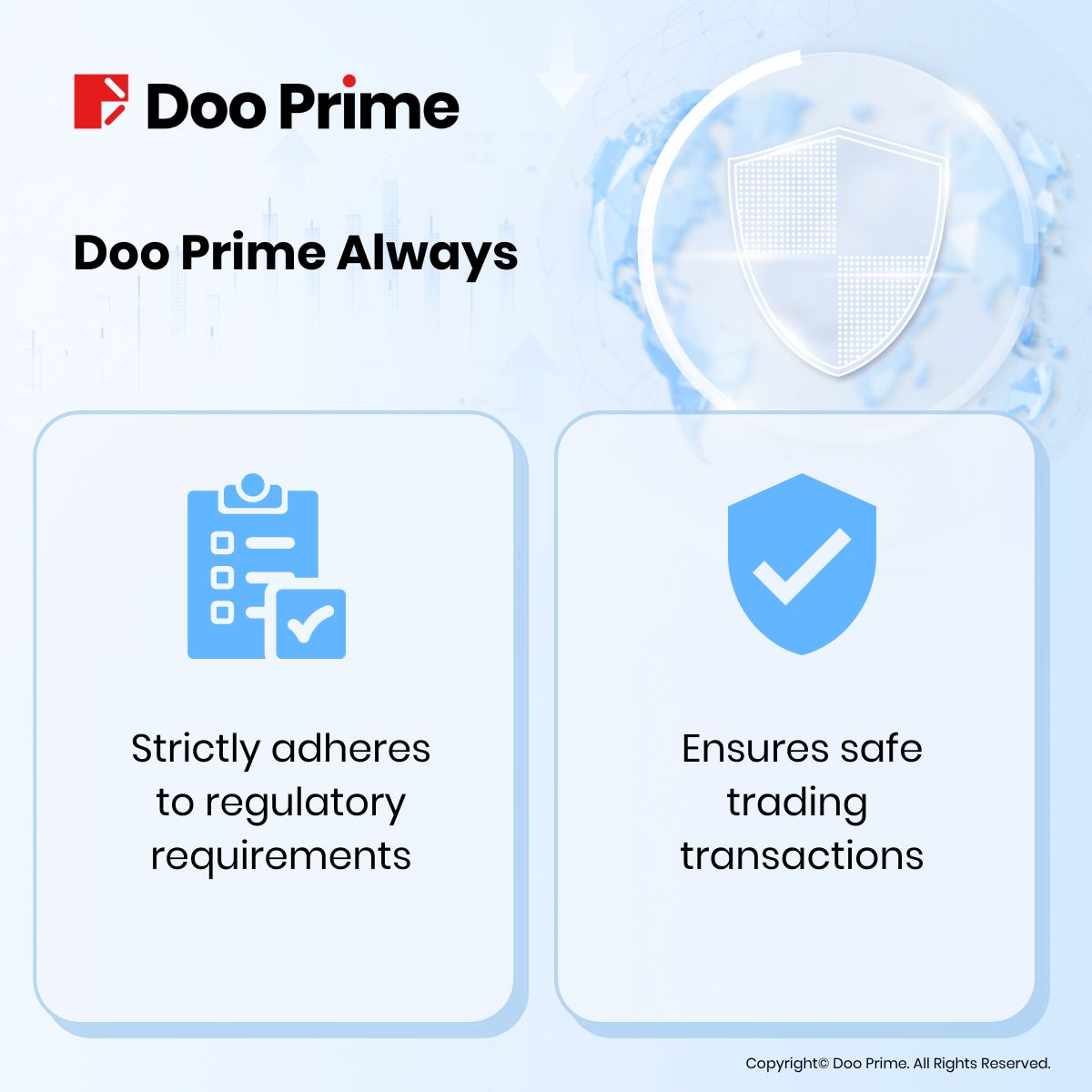 Under the supervision of the Mauritius FSC, Doo Prime strictly abides by the relevant rules and regulations, ensuring every trading transaction is transparent and safe.