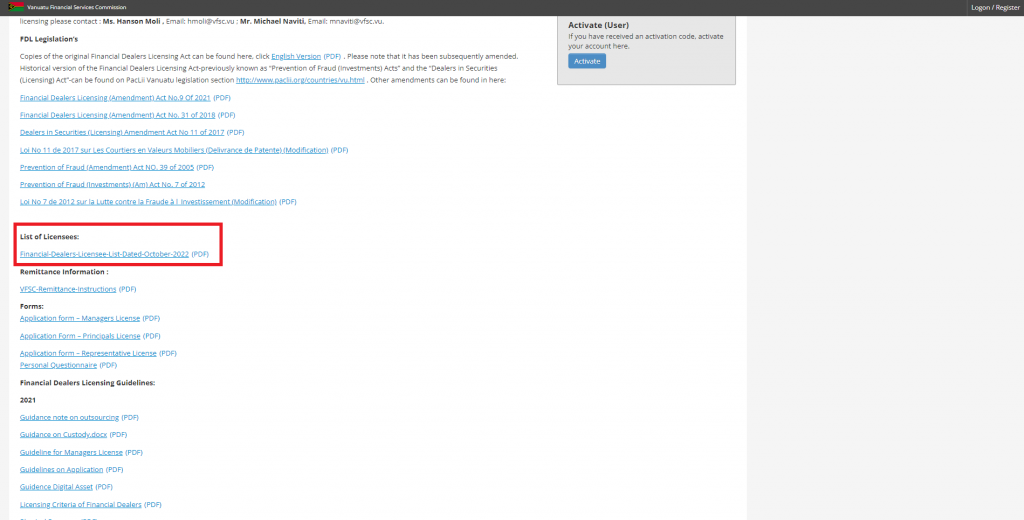 2022-10-20 | Financial regulatory licenses , Vanuatu Financial Services Commission