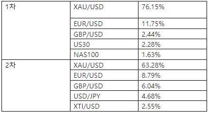 지난번 무이자 이벤트와 비교했을 때 이번 이벤트에서 가장 인기 있는 5가지 종목은 XAU/USD, EUR/USD, GBP/USD, USD/JPY 및 XTI/USD 입니다.