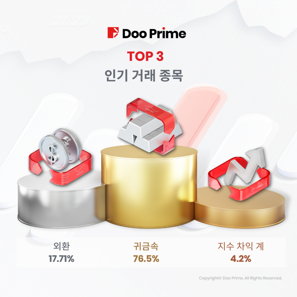 XAU/USD 는 이벤트 기간 최고 거래량을 기록했고 차익 계약 시장에서 골드의 변동성은 전통 통화쌍보다 높기 때문에 Doo Prime에서 항상 가장 많은 거래량을 차지하는 종목 중의 하나입니다. 그러나 시장의 변동성은 언제나 투자 위험을 동반하는데 높은 수익도 마찬가지로 높은 위험성이 따르기에 골드 차익 계약 거래는 수익을 낼 가능성이 높은 투자 종목으로 여겨집니다.