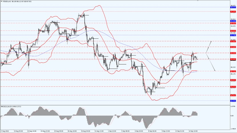 • 如果油价运行于 89.25 一线下方,届时关注 88.08 和 85.72 位置的支撑力度。