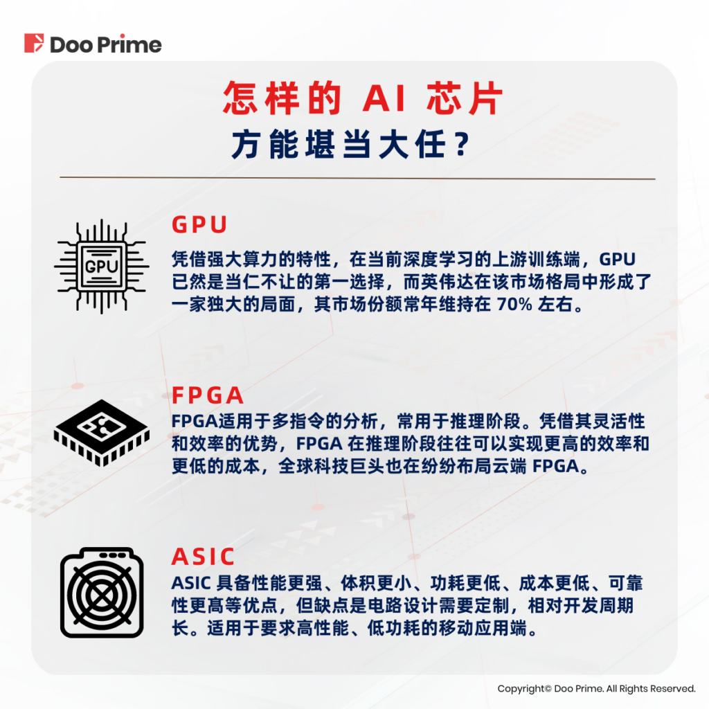 既然知道了人工智能行业需要哪些类型的芯片,那么现在我们不妨来看看各个类型芯片都有哪些关键公司值得市场关注。