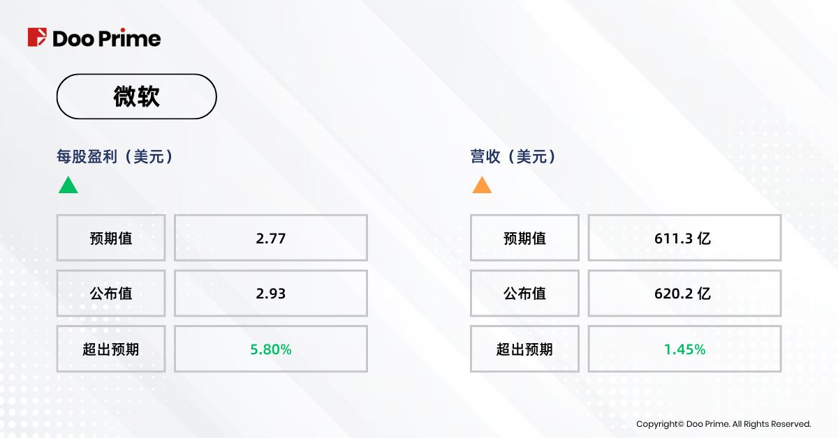然而,微软的积极财报在盘后交易中受挫,因为其业绩指引谨慎,打压股价下跌了 2%。在当前的高估值水平下,任何不寻常的消息都视为利空信号。Alphabet 和 AMD 也面对一样情况,在公布低于预期的业绩后,股价下跌了近 6%。