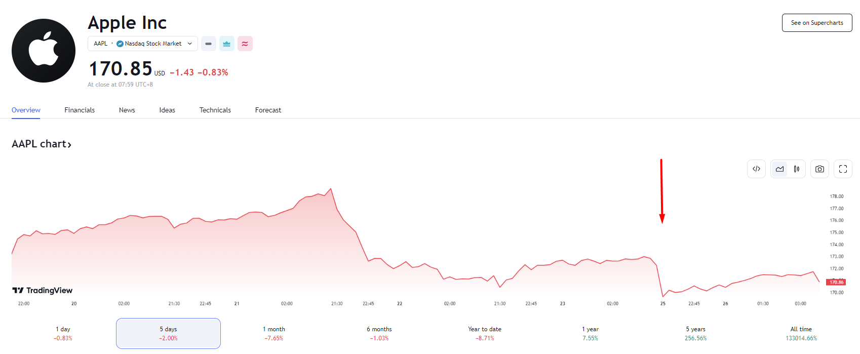 3 月 25 日,欧盟首次采取具有里程碑式反垄断法律—《数字市场法》(DMA),对苹果、谷歌和 Meta 展开调查。欧盟反垄断监管威胁打压纳指止步五连涨,“科技七巨头”盘中齐跌,遭欧盟调查的苹果、谷歌和 Meta 盘中均跌超 1%。