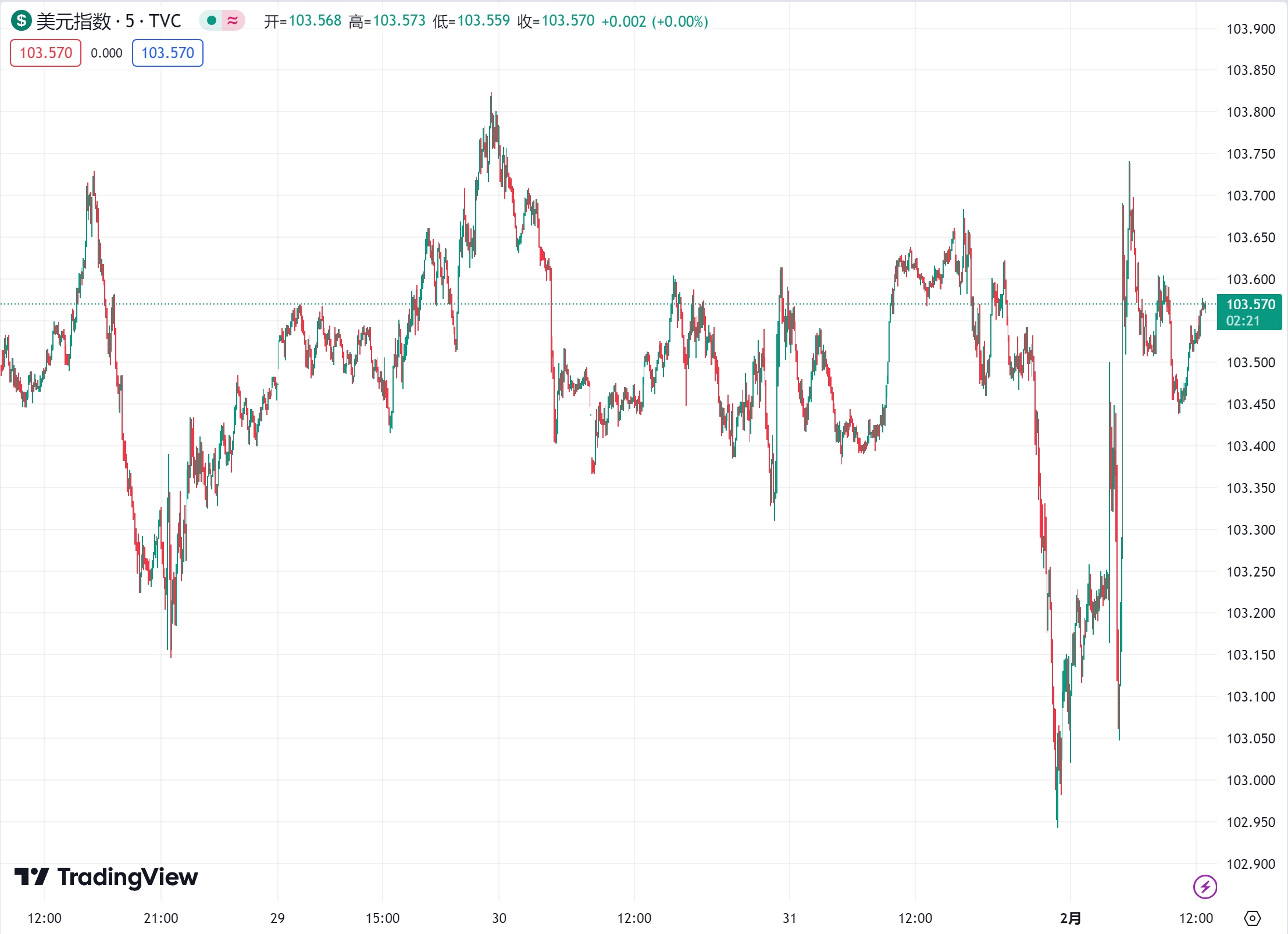 与此同时,受鲍威尔整体偏鹰和市场避险情绪的推动,美元指数周三则进一步走高,尾盘上涨 0.26%,报 103.66。从全月表现看,美元指数在新年首月累计上涨了约 2.3%,为去年 9 月以来的最佳月度表现。