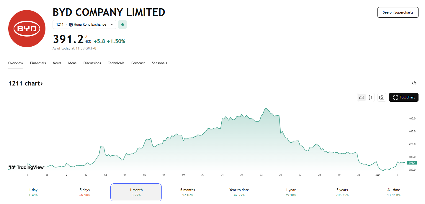 比亚迪海内外销量创纪录,但股价反跌 17%
