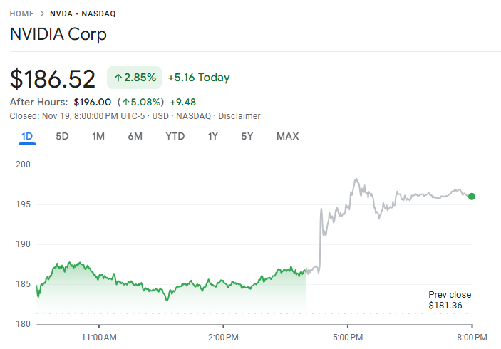展望未来,英伟达预计第四季度营收将达到 650 亿美元,高于市场普遍预期的 620 亿美元,并预期毛利率将回升至 75%。乐观指引带动股价在盘后交易中上涨约 3.5%,显示投资人对公司在 AI 晶片市场持续领跑的信心不减。