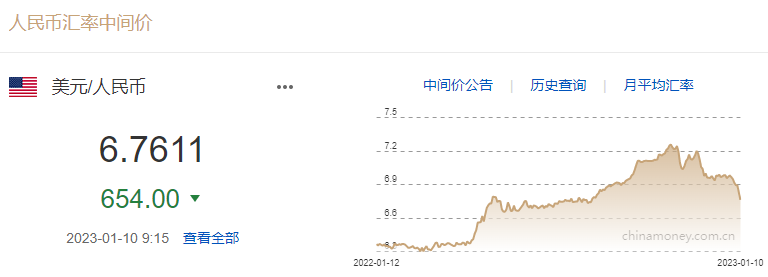 1 月 9 日,也是 2023 年开年以来第 5 个交易日,人民币兑美元继上周突破 6.9 点位后,昨日升破 6.77,保持开年以来的“五连升” 之余,也创 2022 年 8 月以来新高。中国外汇交易中心数据显示,在岸、离岸人民币兑美元汇率双双收复 6.8 关口。截至发稿,人民币兑美元中间价报 6.7611,较上一交易日上调 654 点。