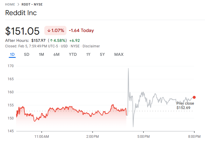 Reddit (RDDT) 公布 2025 年第四季度财报,业绩显著超出市场预期。季度营收同比增长 69.6% 至 7.256 亿美元,高于市场预估的 6.67 亿美元;每股盈余达 1.24 美元,优于市场预期的 0.93 美元。