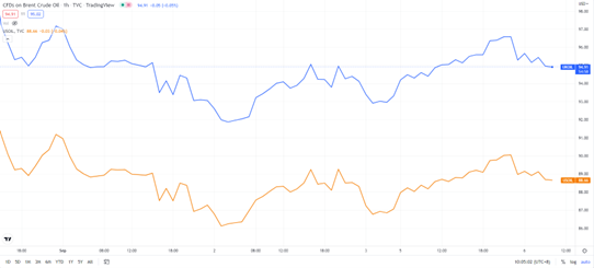 消息发布后,布伦特原油和 WTI 原油均短线上涨逾 1 美元/桶,随后转为下跌,布伦特原油现报 94.91 美元/桶,WTI 原油现报 88.66 美元/桶。