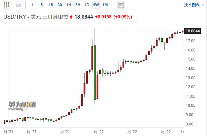 此外,进入 2022 年以来,土耳其里拉对美元贬值幅度已超过 25%,这是继去年最后两个月大幅贬值之后的再次下跌,里拉成为新兴市场货币中表现最差的货币。