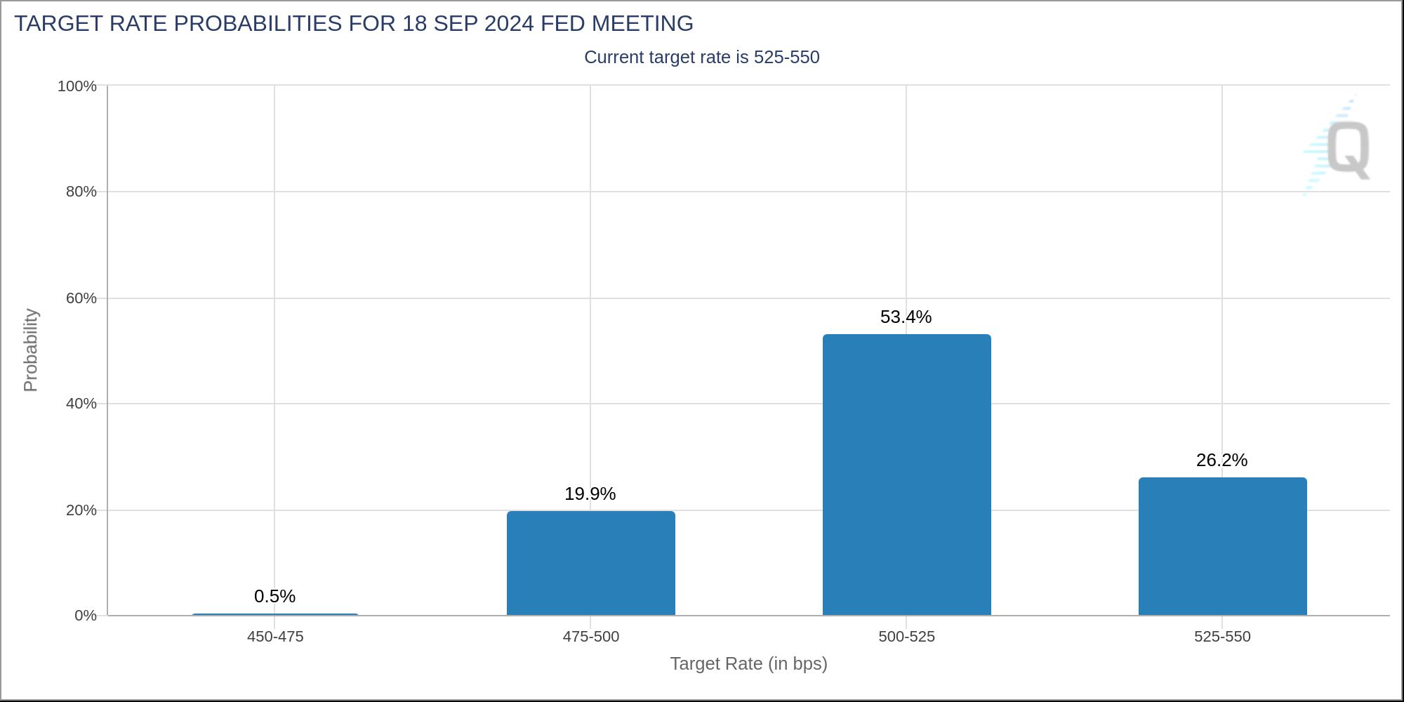 与此同时,交易员提高了对美联储降息的预期。利率互换显示,押注 9 月美联储降息 25 个基点的概率已超过 50%。