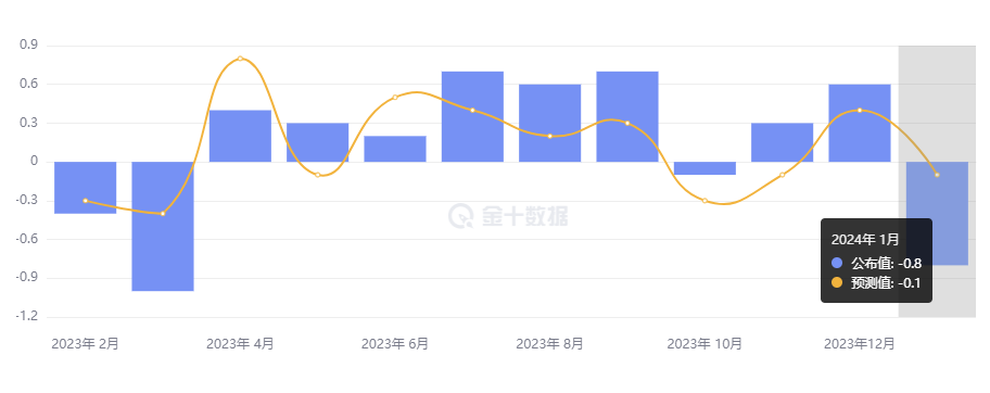 - 零售销售(除汽车与汽油)环比下跌 0.5%,预期为环比上涨 0.2%,12 月前值为环比上涨 0.6%;