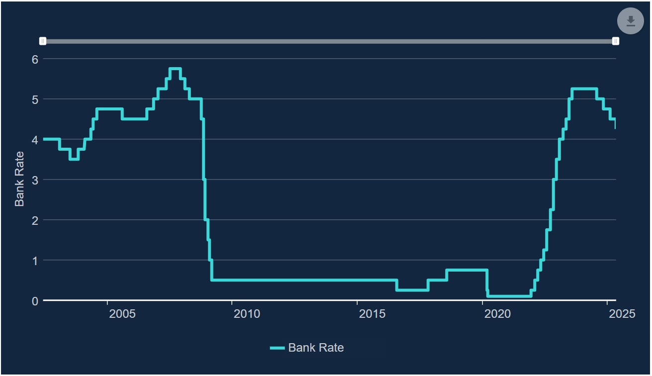 英国央行如期降息 25 个基点,关税风险下决策分歧加剧