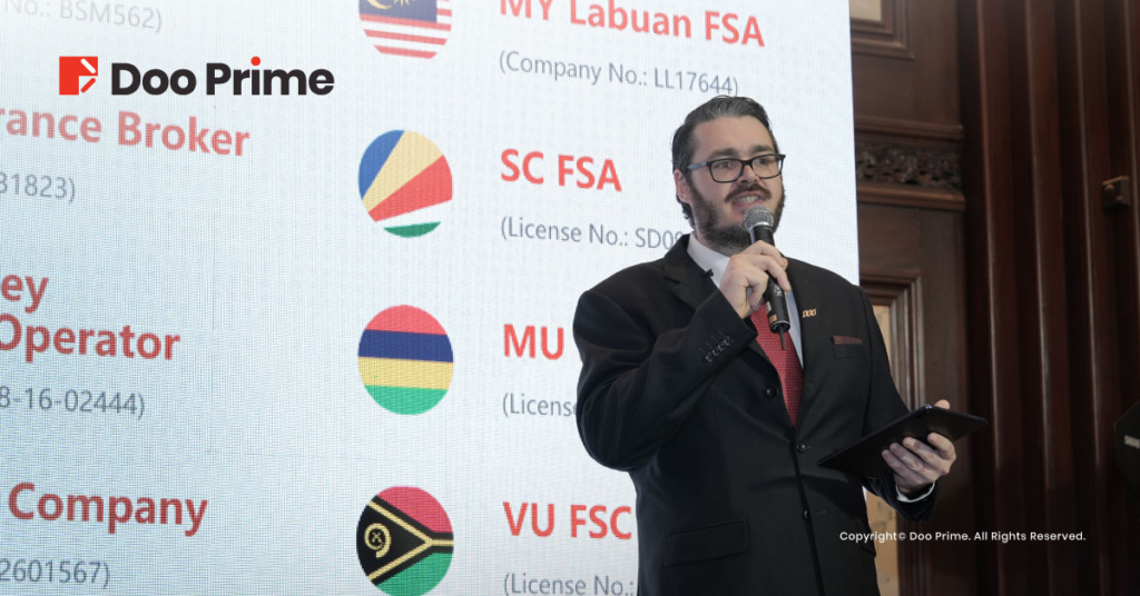 Fraser 的演讲主题为“Transform Your Business To The Next Level”,其中详细阐明了在全方位解决方案与高质量的服务的加持下,Doo Prime 已然成为了一个安全高效的交易平台。Fraser 提到,Doo Prime 提供广泛的金融产品选择、实行资金隔离,同时持有全球多个金融监管牌照,其交易工具与平台不仅备受国际认可,更不定时放送多项独家福利,令 Doo Prime 始终保持优势,与时并进。