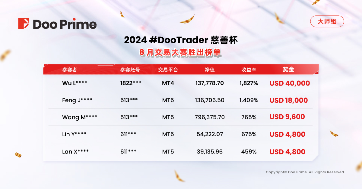 与此同时,2024 #DooTrader 慈善杯 9 月交易大赛也已经在本周同步启动,诚邀各路交易精英继续争锋对决,一展交易实力!>>>>>>立即点击报名参加!