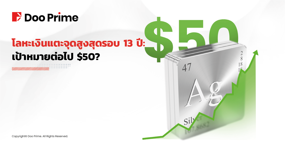 โลหะเงินแตะจุดสูงสุดรอบ 13 ปี: เป้าหมายต่อไป $50?