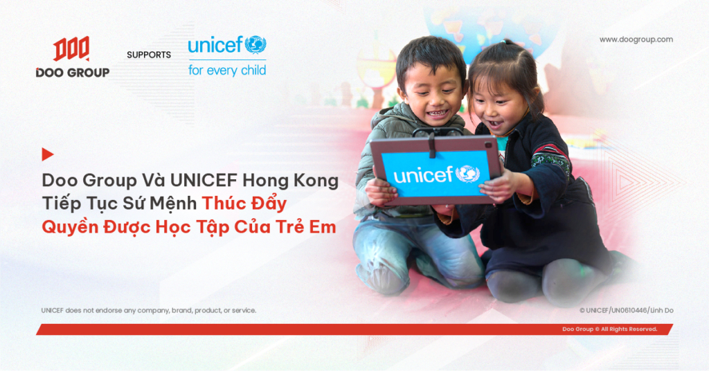 Tập đoàn Doo Group xin trân trọng thông báo: Chúng tôi sẽ tiến hành gia hạn mối quan hệ đối tác cùng phát triển với UNICEF Hong Kong nhằm tiếp tục thúc đẩy quyền được học tập của trẻ em. Kể từ tháng 4 năm 2022, Doo Group đã bắt đầu hành trình đồng hành cùng UNICEF trong việc hỗ trợ giáo dục trẻ em thông qua việc tham gia chương trình “Trường học cho Châu Á”.