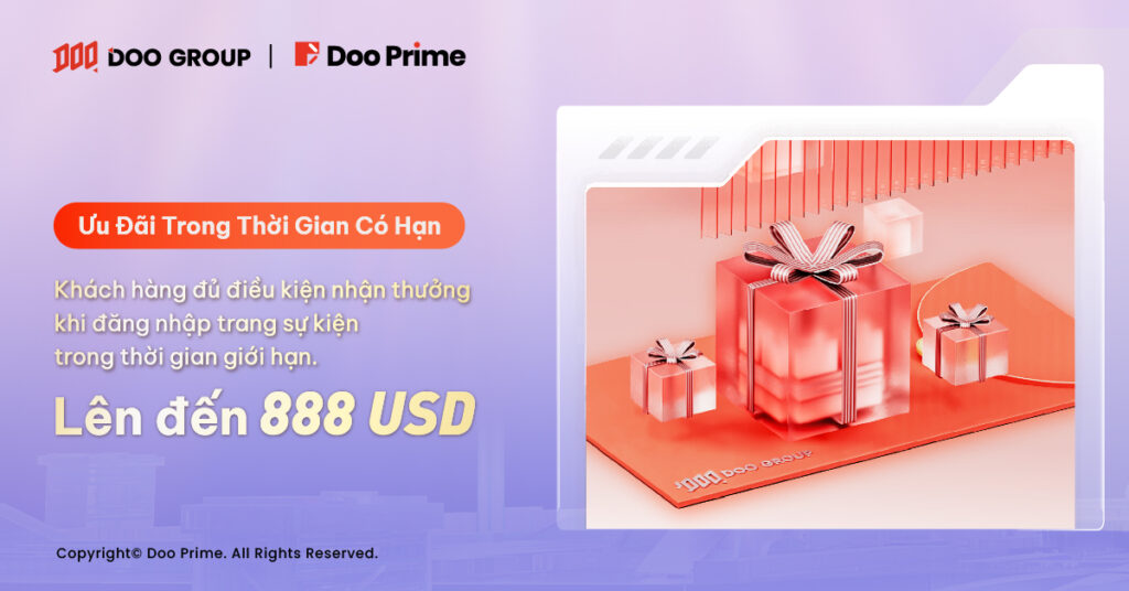 Ngoài phần thưởng tiền mặt và hệ thống quà tặng có giá trị, Doo Prime cũng sẽ thường xuyên tặng cho các khách hàng toàn cầu những ưu đãi trong thời gian có hạn vào ngay tháng 11. Bằng cách đăng nhập vào trang sự kiện, tất cả các khách hàng đã nạp 100 USD và sở hữu một lô giao dịch với Doo Prime đều đủ điều kiện để nhận ưu đãi trong thời gian có hạn với trị giá lên đến 888 USD.