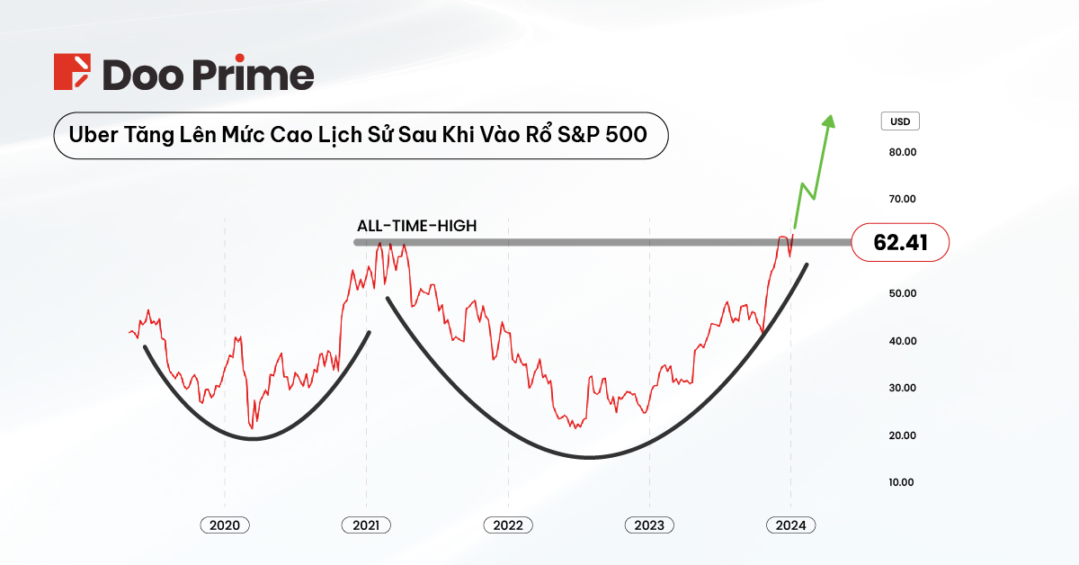 Từ góc nhìn kỹ thuật, giá cổ phiếu Uber đang hướng đến phá vỡ đỉnh lịch sử. Nếu thành công vượt qua mốc này, chúng ta có thể tự tin nhắm tới đỉnh giá mới, có thể là 80, 90 hoặc thậm chí là 100 USD.