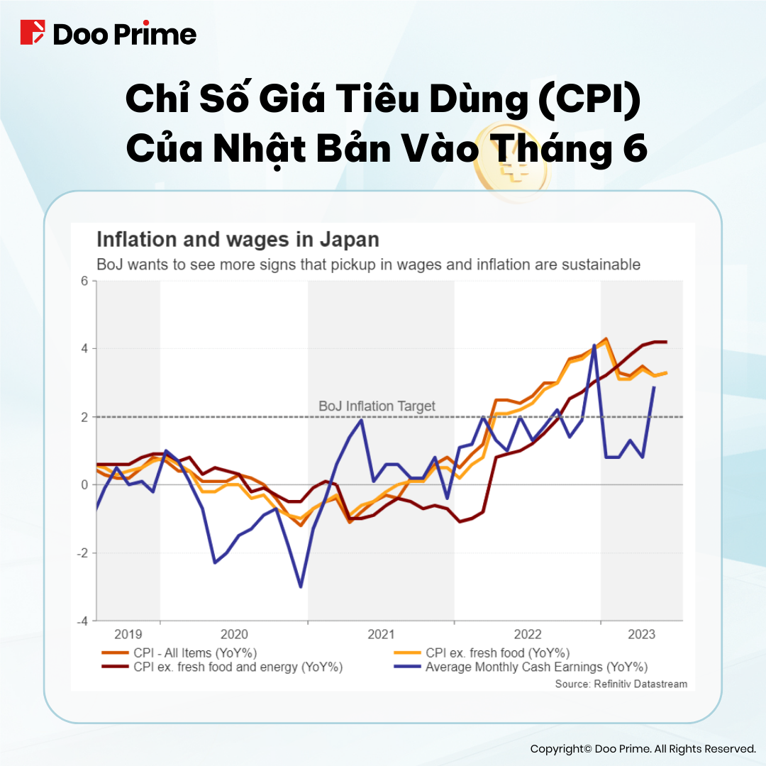 Các tuyên bố của Ueda đã làm sáng tỏ lý do chính cho việc điều chỉnh chính sách YCC – áp lực lạm phát. Áp lực lạm phát hiện tại tại Nhật Bản đã tồn tại, với chỉ số Giá tiêu dùng (CPI) tháng 6 đạt 105,0, tăng 3,3% so với cùng kỳ năm trước, kéo dài chuỗi tăng trưởng liên tiếp trong 22 tháng.