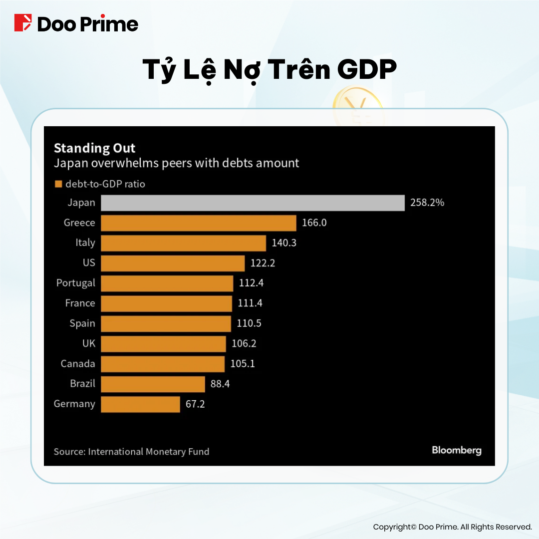 Thêm đó, Quỹ Tiền tệ Quốc tế (IMF) ước tính nợ của Nhật Bản lên đến con số đáng kinh ngạc 1.270.499 nghìn tỷ JPY (tương đương khoảng 9 nghìn tỷ USD) vào năm 2022, tương đương khoảng 260% GDP của họ.
