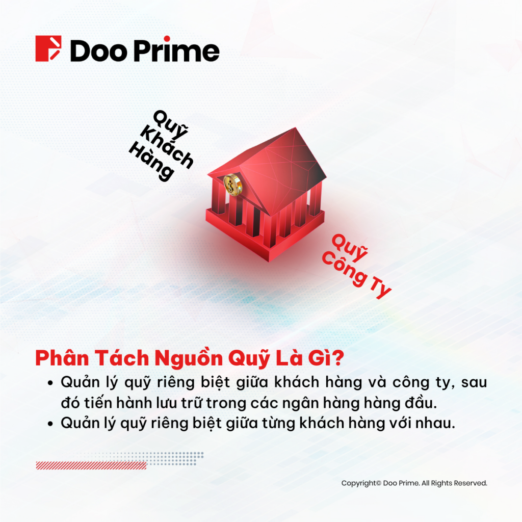 Nhằm đảm bảo nguồn quỹ của khách hàng được tách biệt và bảo mật tuyệt đối, Doo Prime đã thiết lập mối quan hệ đối tác với các ngân hàng hàng đầu thế giới. Ngân hàng cấp đầu tư như Barclays Bank, từ lâu đã được được biết đến với sức mạnh và sự ổn định trong xuyên suốt quá trình hoạt động. Đây cũng là lý do khiến Doo Prime quyết định chọn làm nơi giữ gìn và phân tách các nguồn quỹ của khách hàng khỏi quỹ hoạt động của công ty.